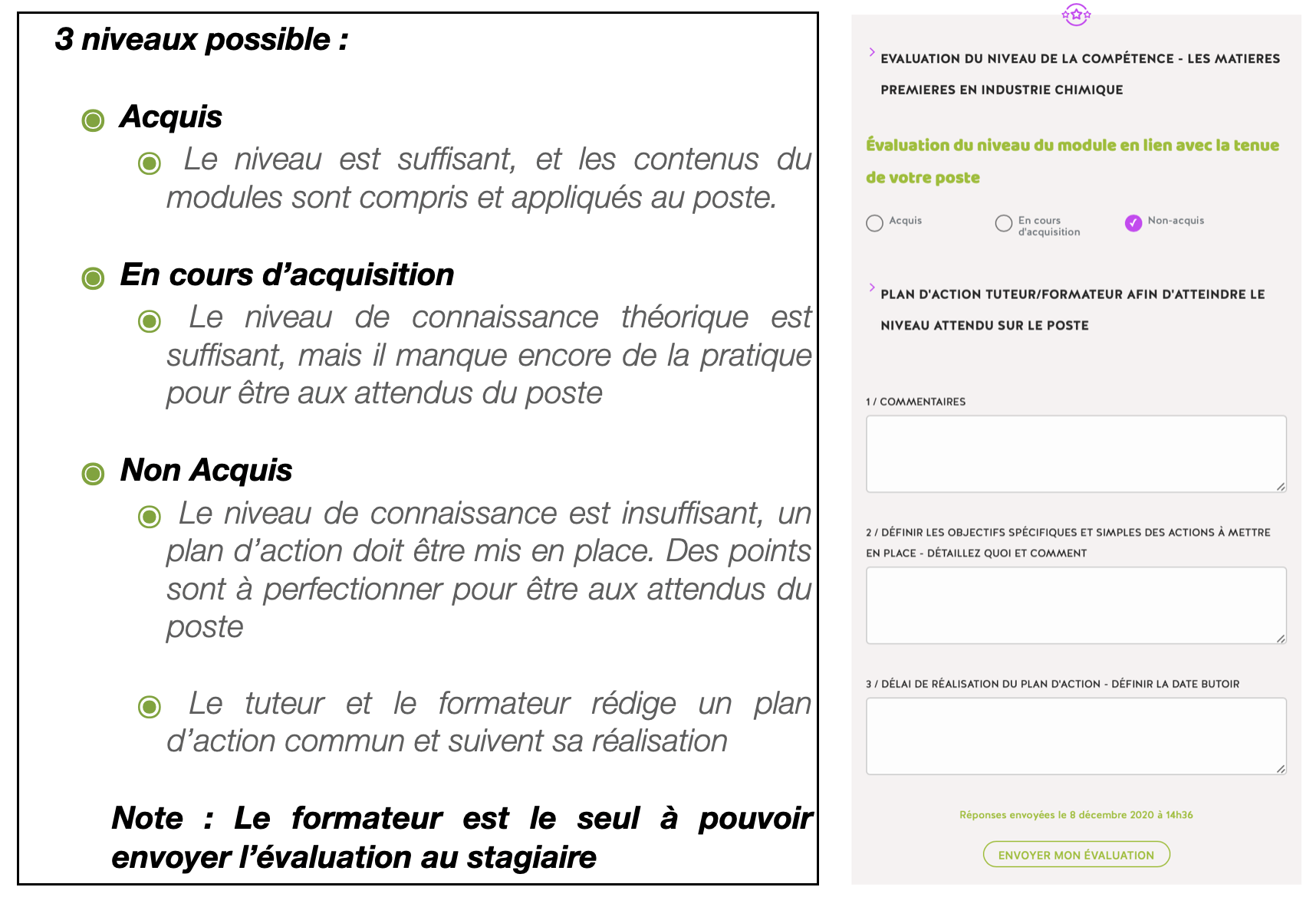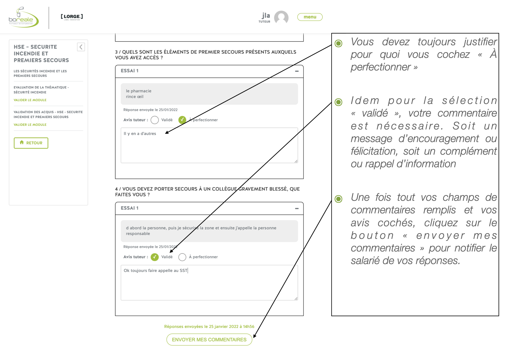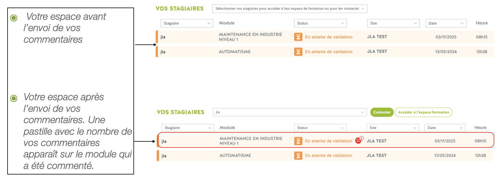 Envoi des commentaires au stagiaire