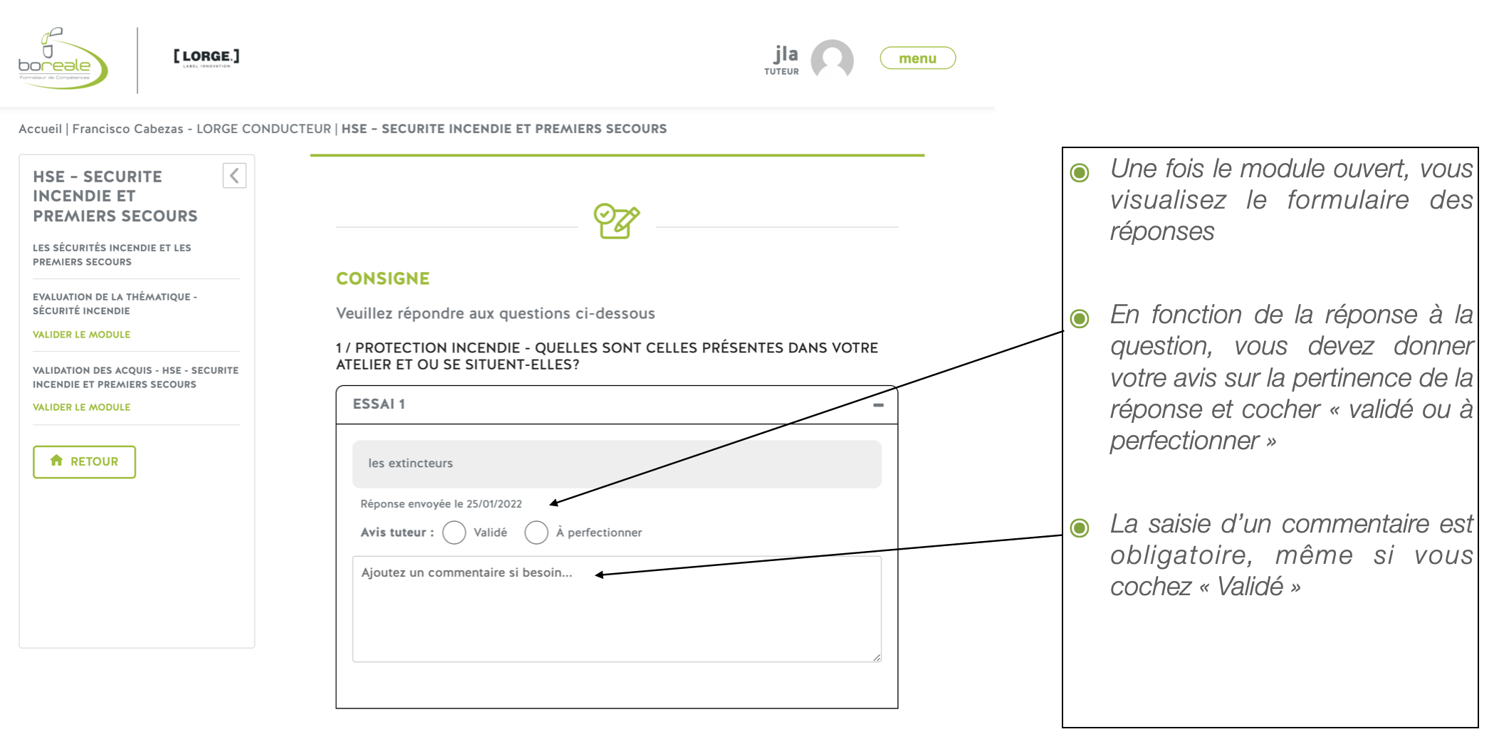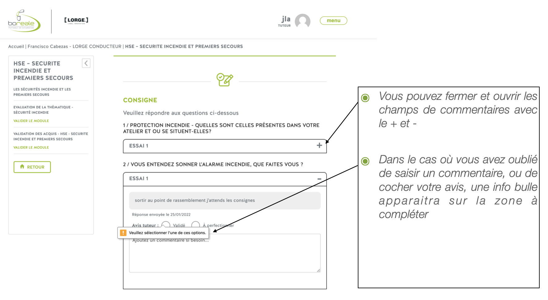 Interface tuteur : parcours stagiaire
